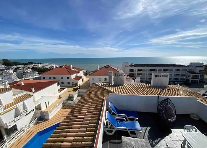 Double Rooftop Mont-Blanc : Vue Plage Amazing lägenhet erbjuder strandnära boende i Albufeiras Areias Sao João distrikt. Denna lägenhet på 130 m^2 är belägen inom gångavstånd från Praia da Oura, och erbjuder utsikt över den privata poolen samt vattenpark, soldäck och solterrass.